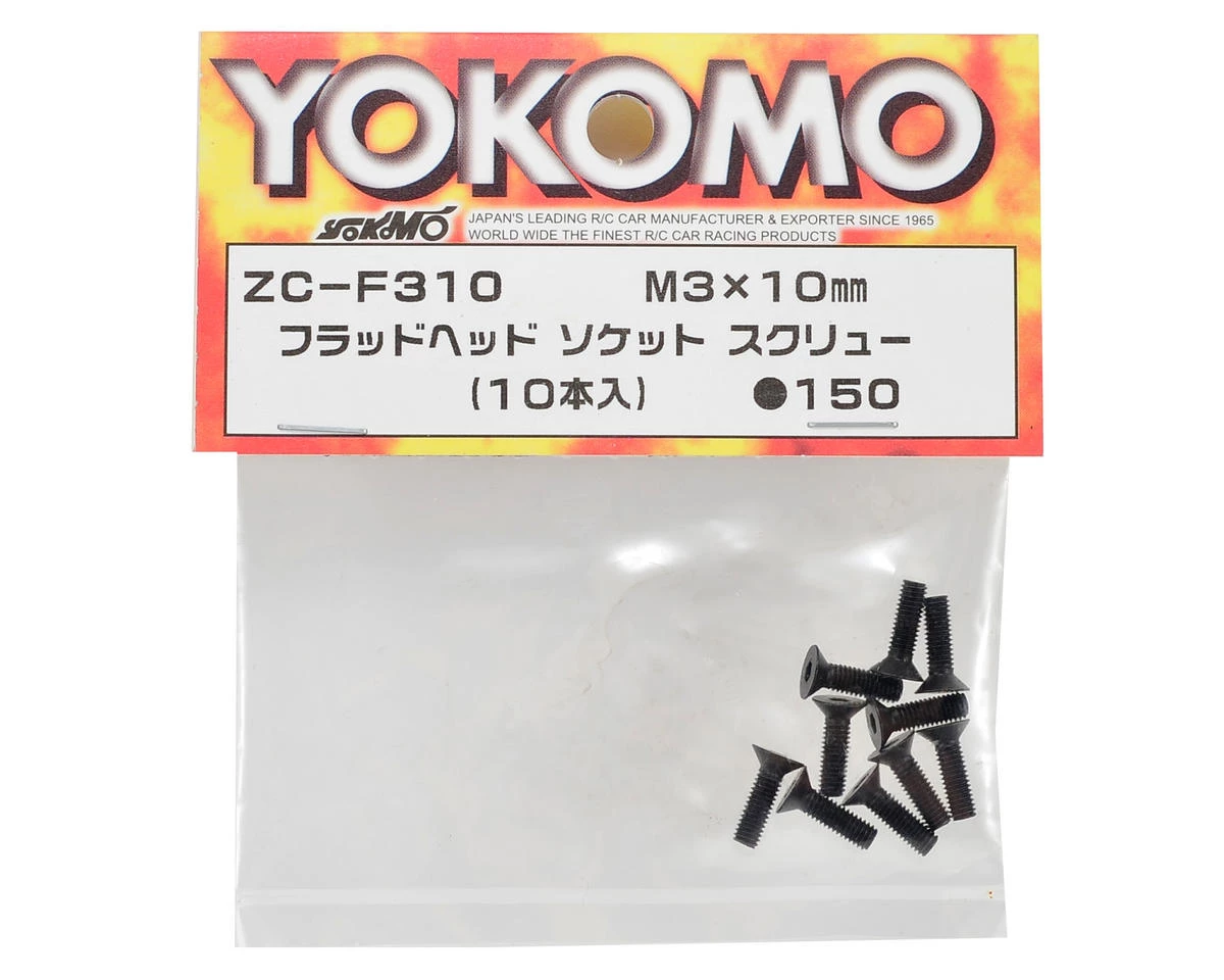 This is a pack of ten replacement Yokomo 3x10mm Flat Head Hex Screws. Â