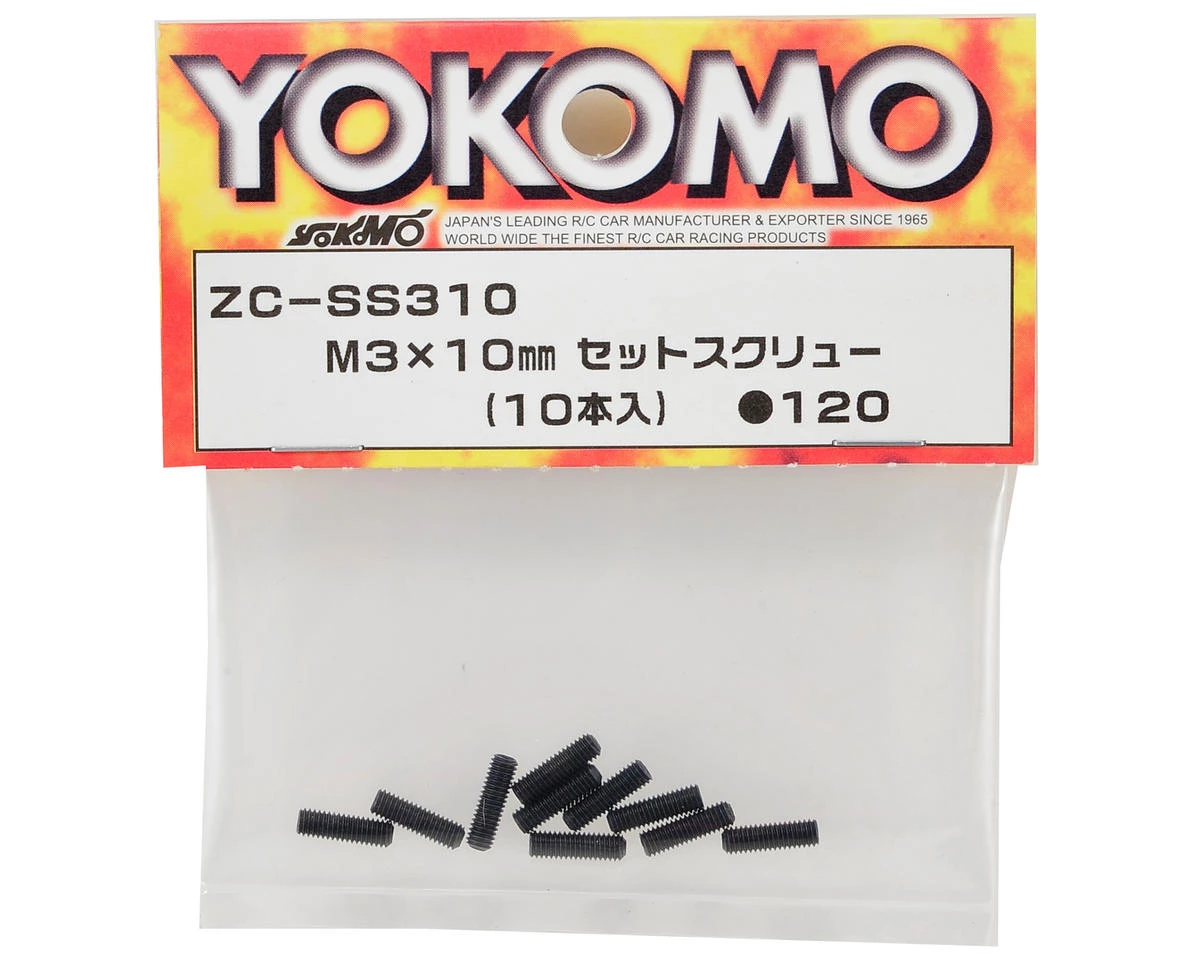 This is a pack of ten Yokomo 3x10mm Set Screws. These screws are used in the rear shock assembly.