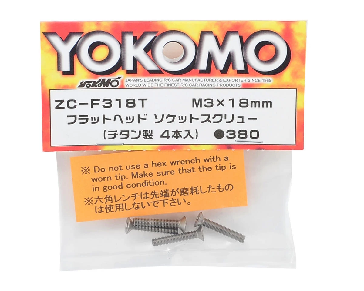 This is a pack of four optional Yokomo 3x18mm Titanium Flat Head Screws, and are intended for use with the Yokomo B-Max2 1/10 scale buggy.Â