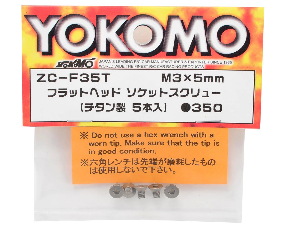 This is a pack of five optional Yokomo 3x5mm Titanium Flat Head Screws, and are intended for use with the Yokomo R12 1/12 scale pan car.Â