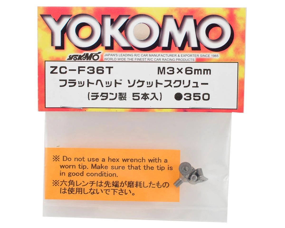 This is a pack of five Yokomo 3x6mm Titanium Flat Head Screws.Â