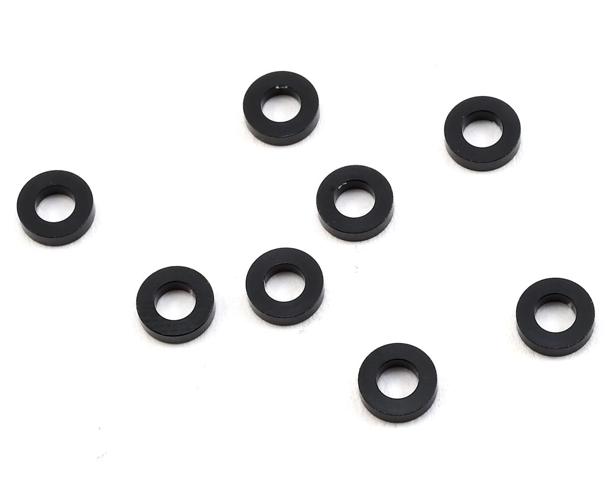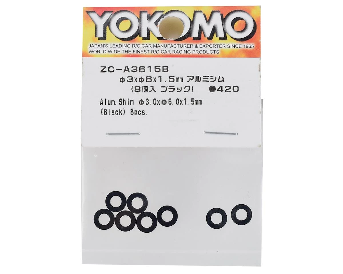 This is a pack of eight Yokomo 3x6x1.5mm Aluminum Shims in Black color. These spacers can be used for a wide variety of applications.