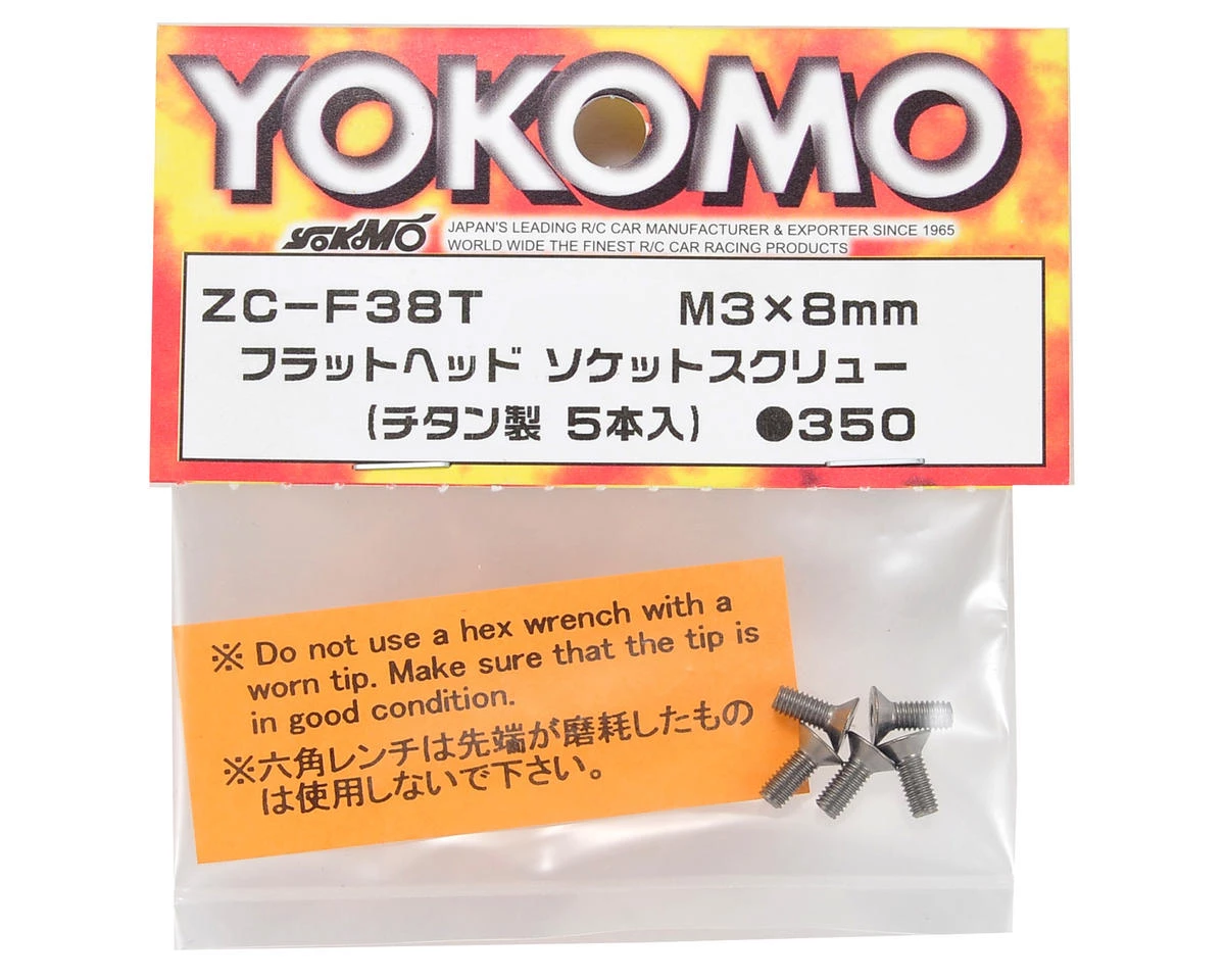 This is a pack of five optional Yokomo 3x8mm Titanium Flat Head Screws, and are intended for use with the Yokomo B-Max2 1/10 scale buggy.Â
