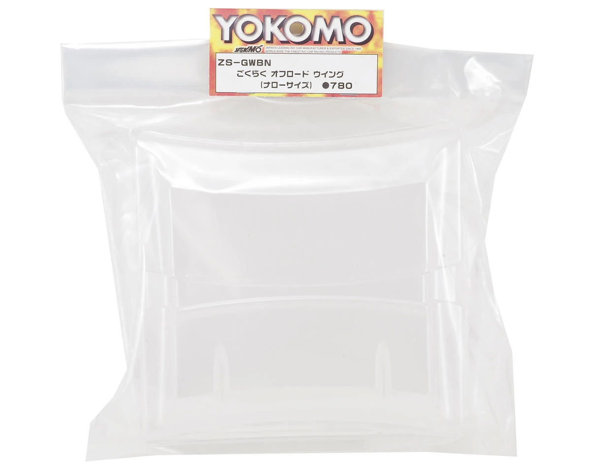 This is a pack of two Yokomo “Narrow” Gokuraku Off-Road Wings. These classic paradise wings are 6.5″ wide and are ideal for high grip turf or carpet conditions, providing enough downforce to ensure turning performance features reduced roll. Both wings are curved and feature multiple lines for trimming at different heights. One wing features two ribs that will provide additional straight line stiffness.