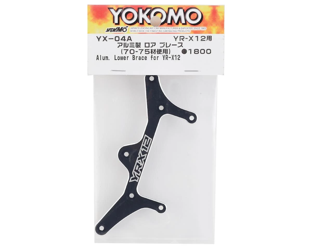 This is an optional Yokomo YR-X12 Aluminum Lower Brace. Using high-quality 2.0mm thick 7075 aluminum material, Yokomo realized a change in rigidity and low center of gravity with this brace. By thinning the plate thickness, it also corresponds to small diameter tires and is effective for high side prevention on high grip carpet road surface and improvement of stability feeling on other road surfaces. Especially on the high grip road surface, it suppresses excessive steering response.