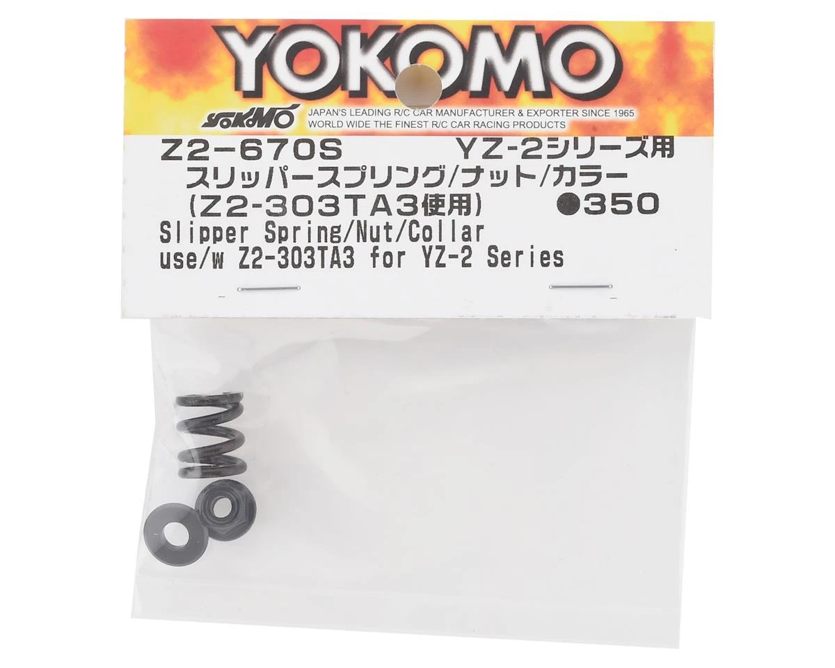 This is an optional Yokomo Slipper Spring, Nut and Collar Set, intended for use with the Yokomo YZ-2 Electric Buggy Kits using the YOKZ2-303TA3 top shaft.