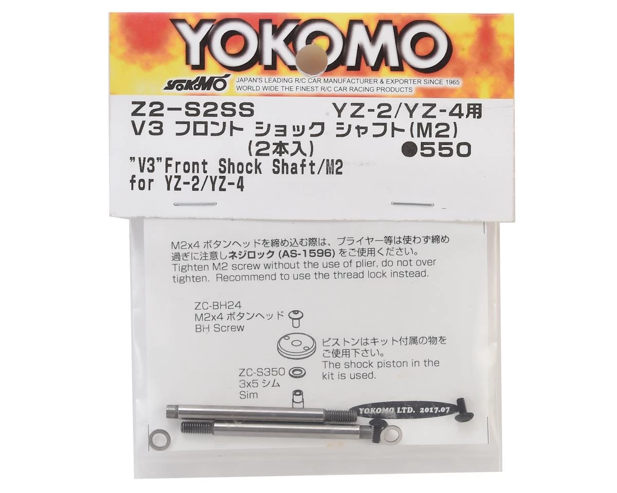 This is a pack of two replacement Yokomo V3 Front Shock Shafts. These shafts are made from steel and feature the addition of using a screw to secure the piston to the shock shaft.