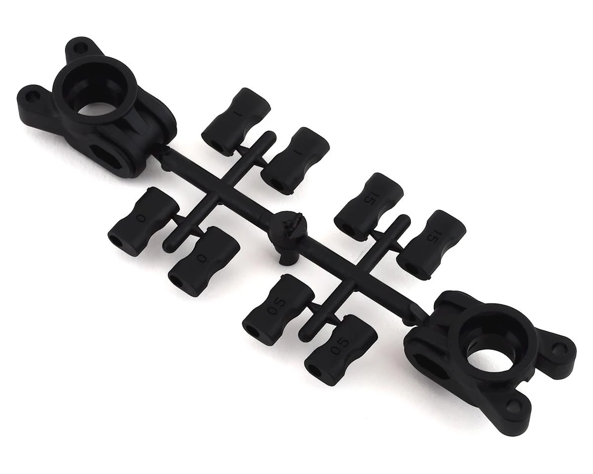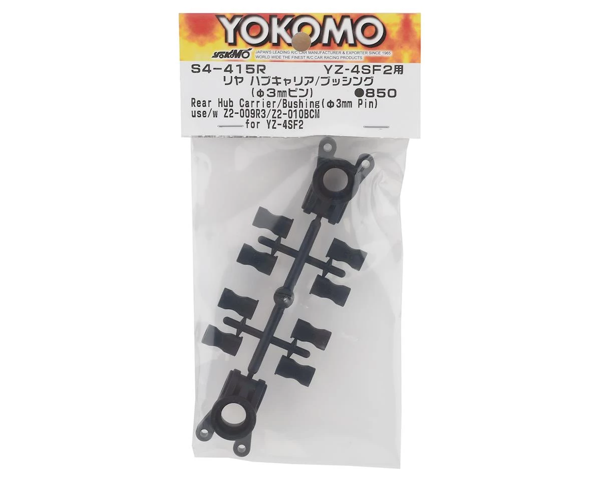 Yokomo YZ-4 SF2 Rear Hub Carrier & Bushing Set. Package includes replacement hub carriers and bushings used to tune the hub geometry.Â